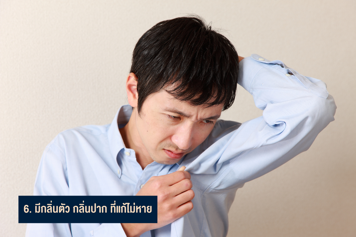 ตื่นเช้าแล้วมีลมหายใจที่เหม็น หลังแปรงฟันก็ยังรู้สึกมีกลิ่นปาก หรือในระหว่างวัน มีกลิ่นที่ไม่พึงประสงค์ไม่ว่าจะเป็น กลิ่นตัว กลิ่นเท้า กลิ่นปาก แก้อย่างไรก็ไม่หาย และทำให้คุณเสียความมั่นใจตามมา สาเหตุก็คือ การมีของเสียและสารพิษที่หมักหมมไว้ ยังไม่ถูกกำจัดออกจากร่างกาย แถมยังถูกขับออกมาผ่านทางผิวหนังและลมหายใจแทน จึงทำให้เรามีกลิ่นตัว และ กลิ่นปาก ตามมานั่นเองค่ะ