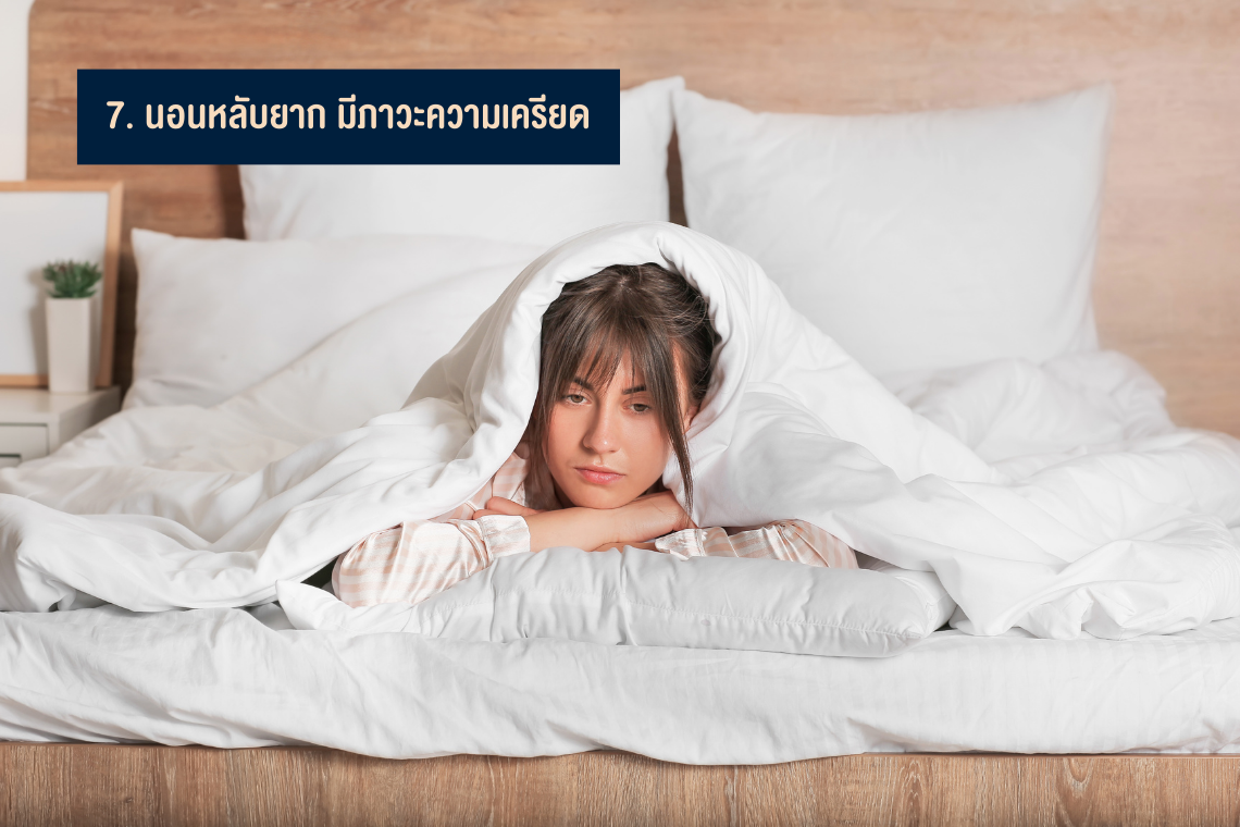 หากคุณมีการพักผ่อนไม่เพียงพอ นอนหลับยาก หลับไม่สนิท เป็นภาวะที่เกิดจากภาวะความเครียดเรื่องงาน ลามไปถึงเรื่องสุขภาพ หลับไม่สนิท ทำให้ขับถ่ายไม่เป็นเวลาและระบบขับถ่ายรวนไปด้วย และยังส่งผลในด้านอารมณ์อีกด้วยนะคะ