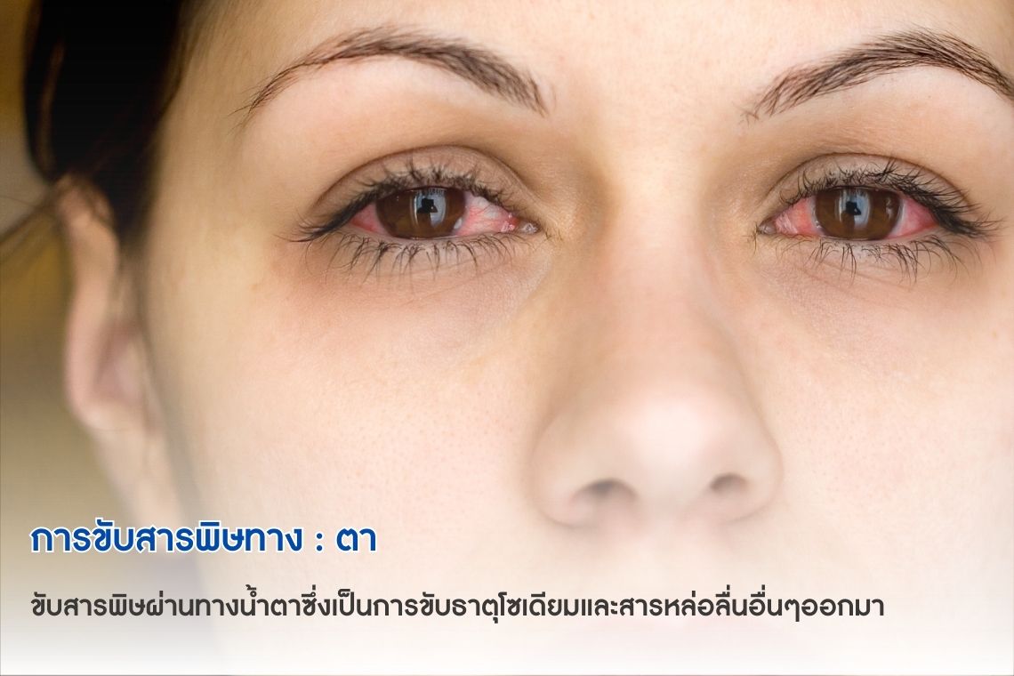 2. ตา: ขับสารพิษผ่านทางน้ำตาซึ่งเป็นการขับธาตุโซเดียมและสารหล่อลื่นอื่นๆออกมา