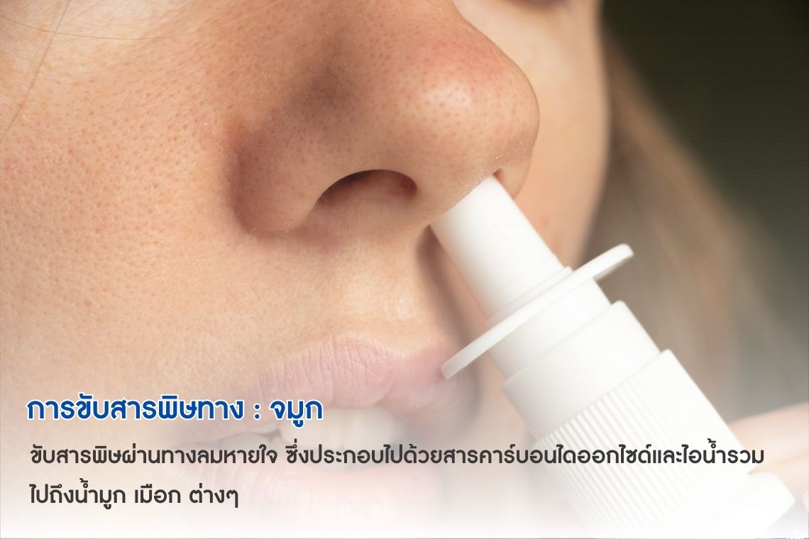 4. จมูก: ขับสารพิษผ่านทางลมหายใจ ซึ่งประกอบไปด้วยสารคาร์บอนไดออกไซด์และไอน้ำรวมไปถึงน้ำมูก เมือก ต่างๆ