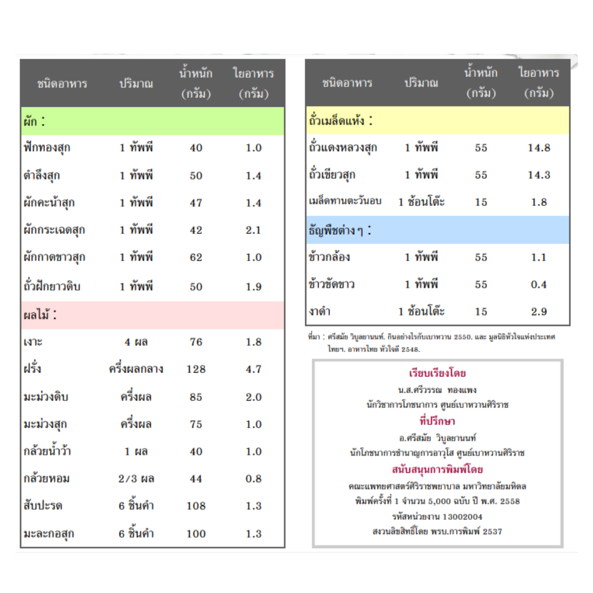 แหล่งอาหารที่พบ : ธัญพืชที่ขัดสีน้อย ถั่วเมล็ดแห้งบางชนิด เช่น ถั่วแดงหลวง ผลไม้บางชนิด เช่น ส้ม ฝรั่ง แอปเปิล ลูกพรุน